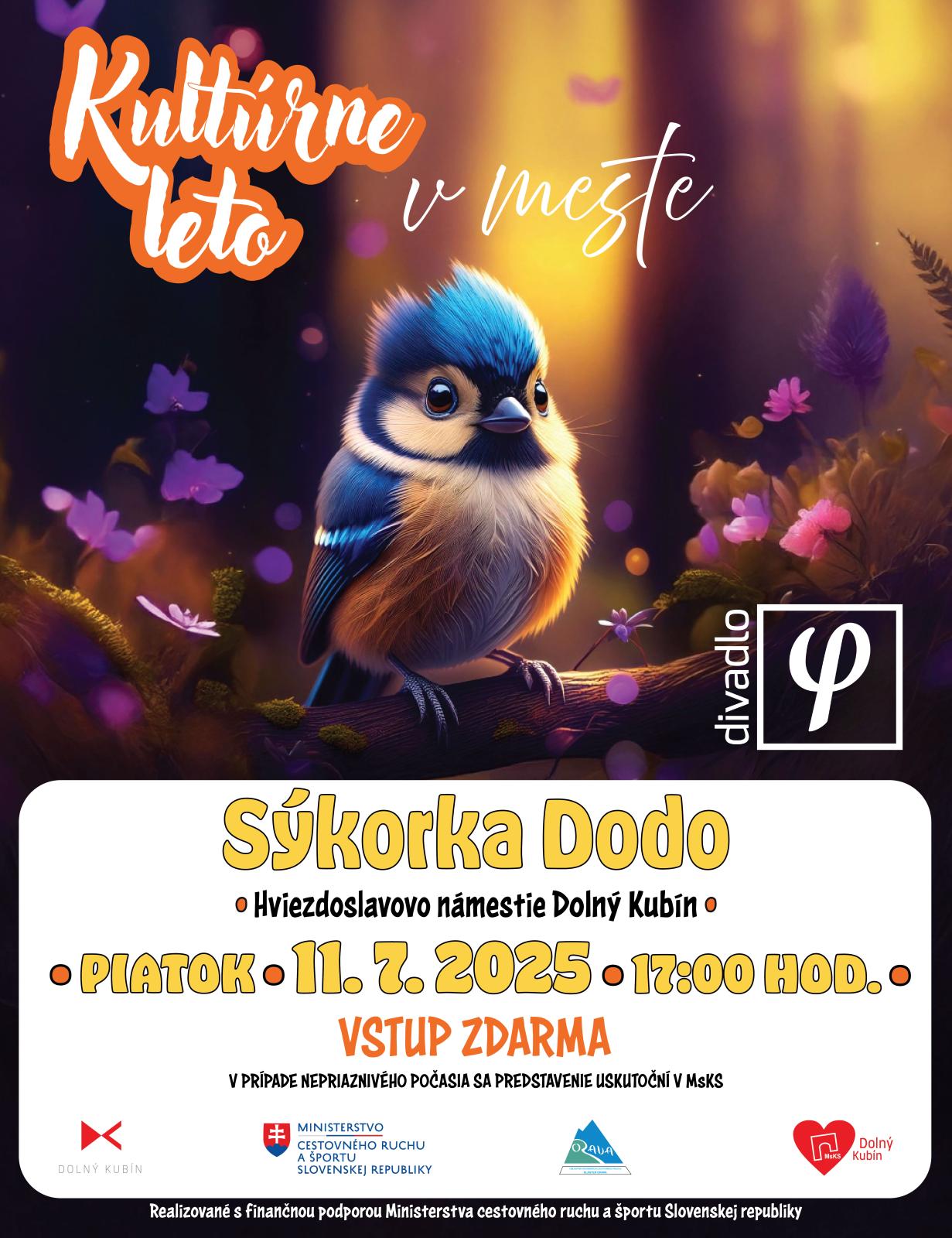 Kultúrne leto v meste Dolný Kubín pokračuje ďalším krásnym podujatím pre najmenších! Tentokrát vás pozývame na bábkové divadelné predstavenie Sýkorka