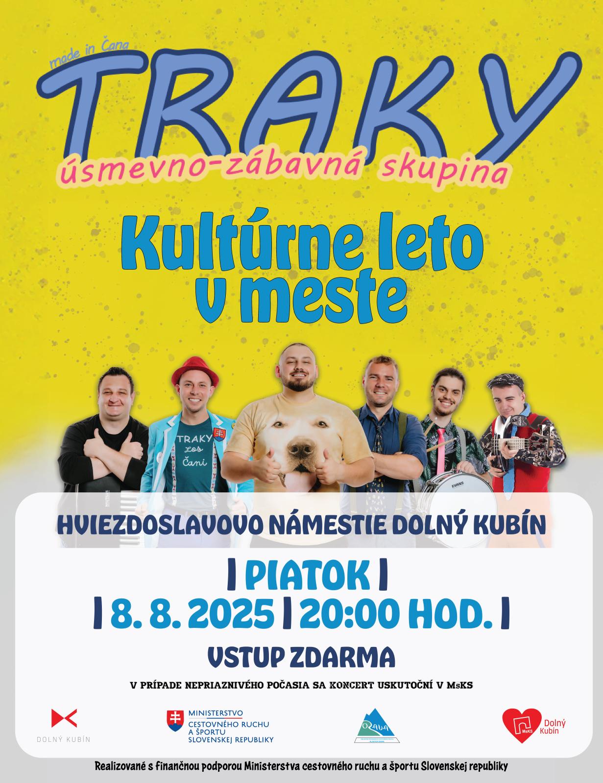 Úsmevno-zábavná kapela z Čane pri Košiciach opäť naživo v Dolnom Kubíne! Srdečne vás pozývame na koncert skupiny TRAKY, ktorý sa