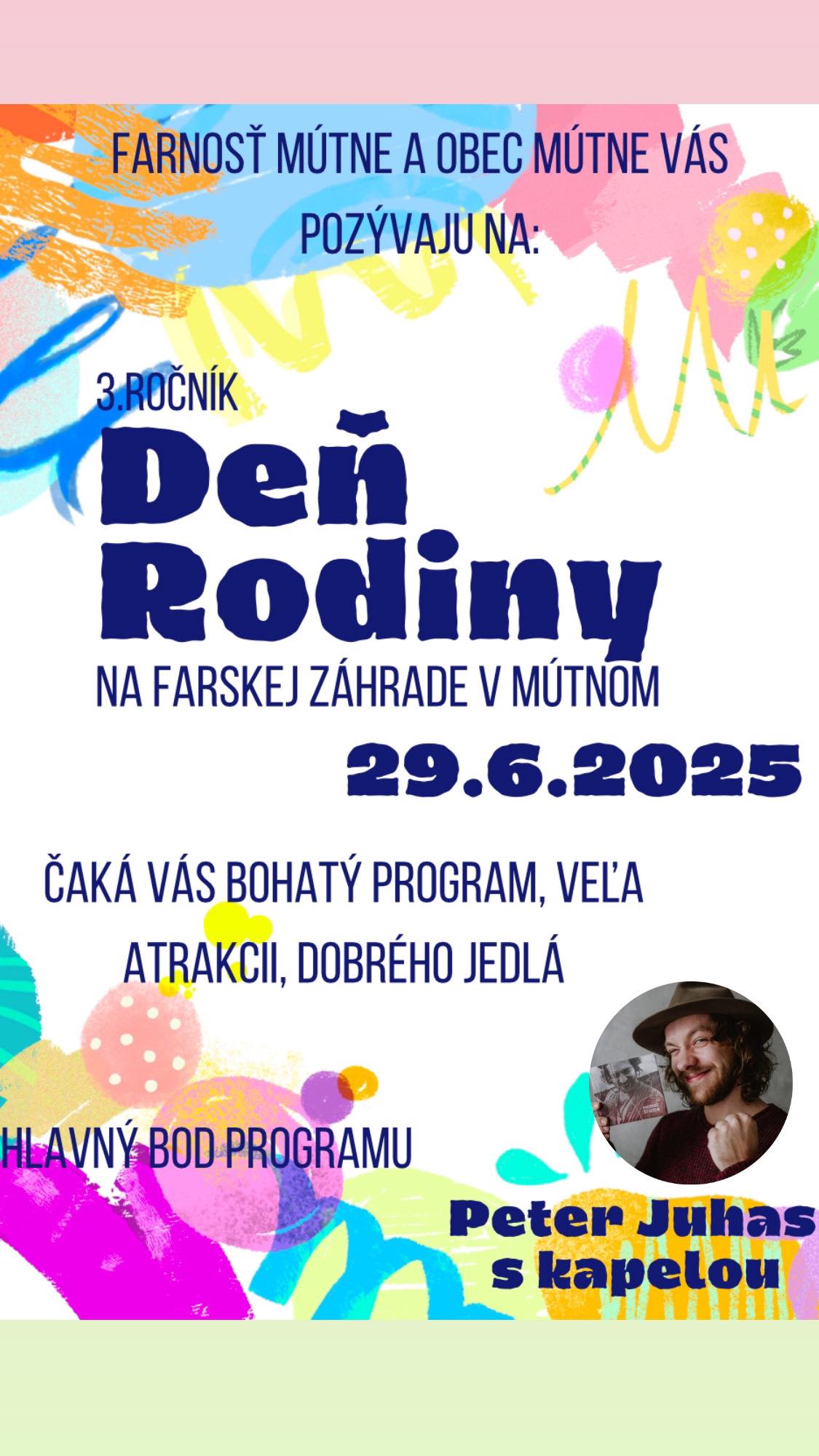 Deň rodiny Mútne 2025 – 3. ročník Už 29. júna 2025 vás srdečne pozývame na náš obľúbený Deň rodiny, kde vás