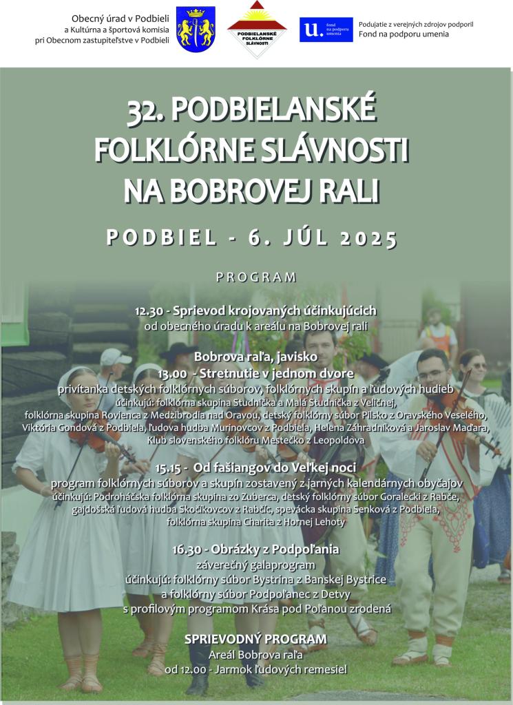 Podbielanské folklórne slávnosti na Bobrovej rali sa uskutočnia v areáli najväčšej pamiatkovej rezervácie ľudovej architektúry v strednej Európe v Podbieli