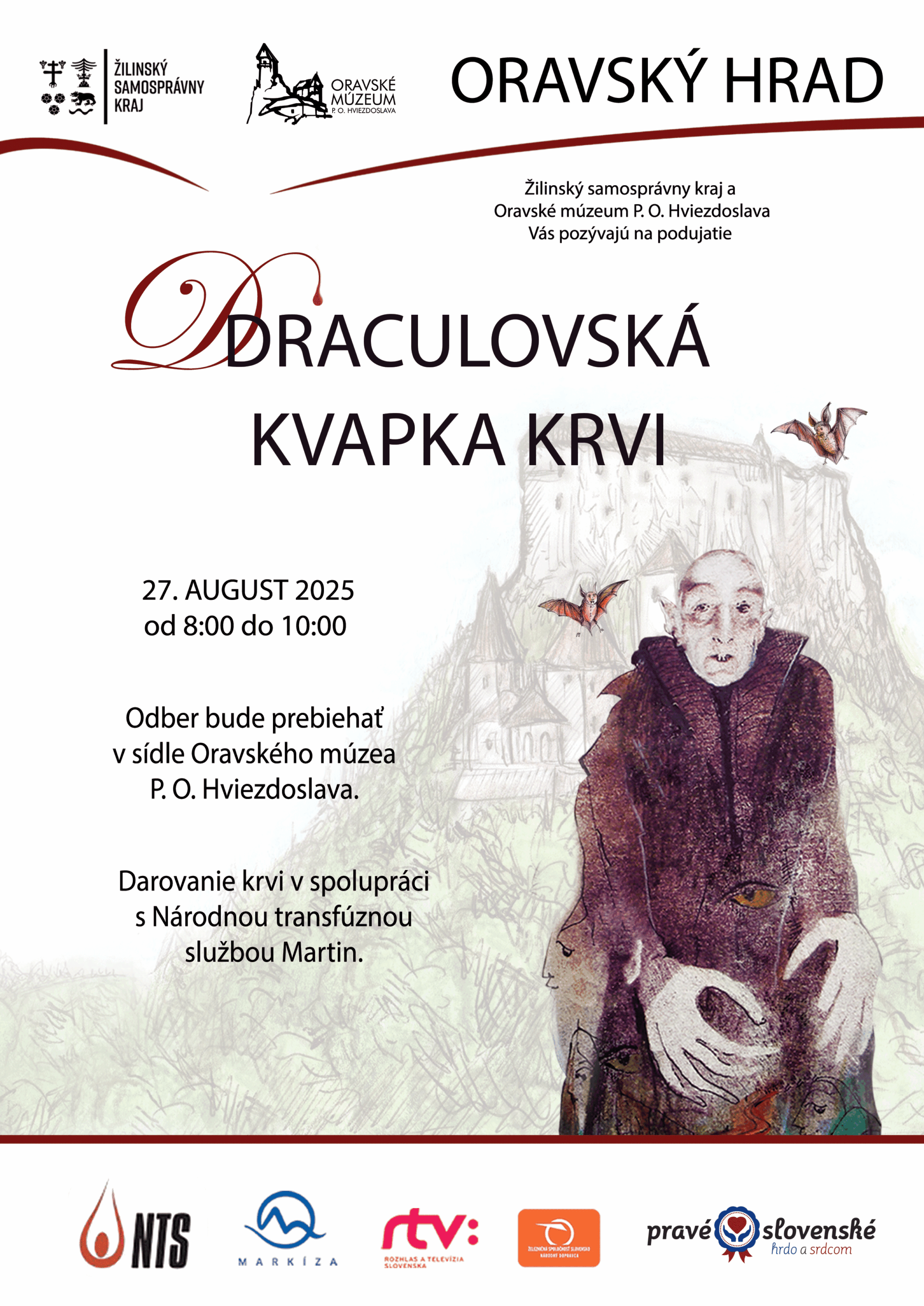 Darovanie krvi v spolupráci s Národnou transfúznou službou Martin. Odber krvi bude prebiehať dňa 27. augusta 2025 od 08.00 do